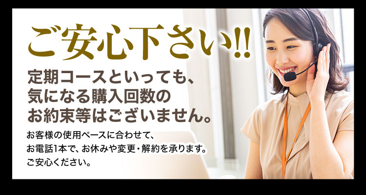 - 購入回数の縛りはありません。お電話1本でお休み・変更・解約を承ります。